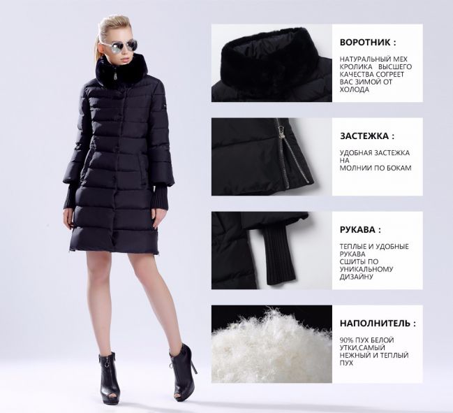 Знаю что многое зафукают, что галимый китай. Но я его носила 2 зимы, пух(натуральный кстати) не лезет, воротник кролик, но съемный и такой плотный хорошо набитый ’кролик-рекс’ выглядит лучше чем на фото,тоже не лезет. Рукава снимаются и я носила с длинными перчатками -красиво.