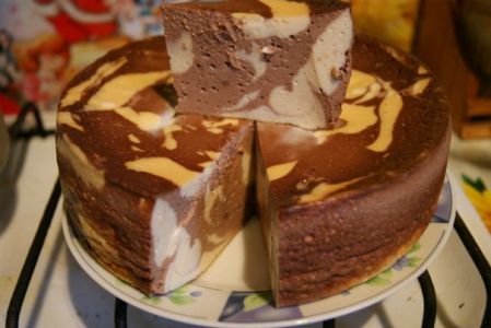 разделяем на две части ,одну мешаем с какао и корицей(у кого что есть) в вторая белая