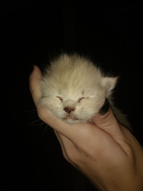 Котенок очень мал к сожалению. Если есть возможность, покажите вету. Если нет то максидин 3 раза в день капать нос глаза, держать в тепле. Но там надо еще два препарата колоть.