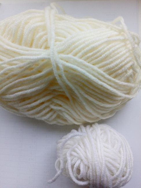 Только синтетическая пряжа бывает кипельно белой. В основном вся пряжа будет желтее листа бумаги