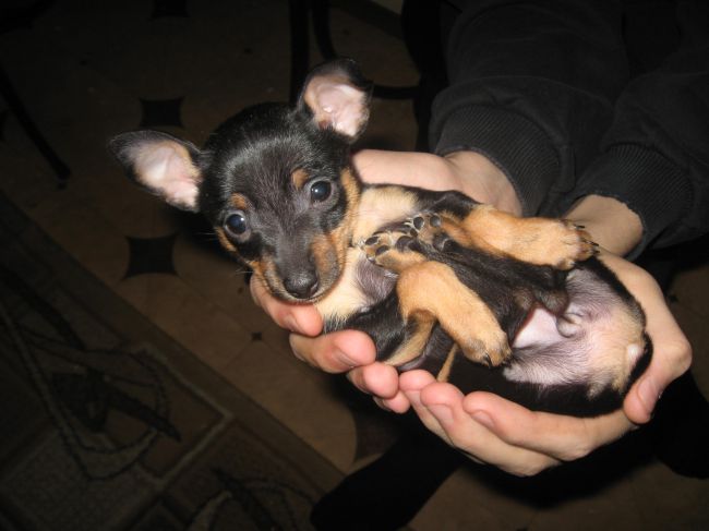 Дочке 9лет было, когда собачку взяли, она на нее сама два года деньги копила, так собаку хотела. А я категорически против собак в квартире, да и выгуливать не очень то хотелось. А эту выгуливай когда хочешь, дома ходит на пеленку. С ребенком очень хорошо ладит, дочка ее научила многим командам, спят вместе, собака - это тоже теперь наш ребенок. Она у нас очень игривая, играет и с мячиками и со шнурочками и с веревочками, прыгает не только на диван, но и на спинку дивана, на стол, на шторах катается. А на улице прям овчарка, никого не подпустит, на чужих сильно кидается, никак не можем отучить кидаться на прохожих, приходится на поводке гулять, так она и с поводка умудряется кидаться. А дома очень ласковая и добрая, спит с нами под одеялом. Кстати кушает в сутки примерно 2столовых ложки, кормим натуралкой. Зимой больше гуляем у нас запазухой, лапки мерзнут, хоть и одета в теплый комбез. На фото она в два месяца, когда мы ее взяли.