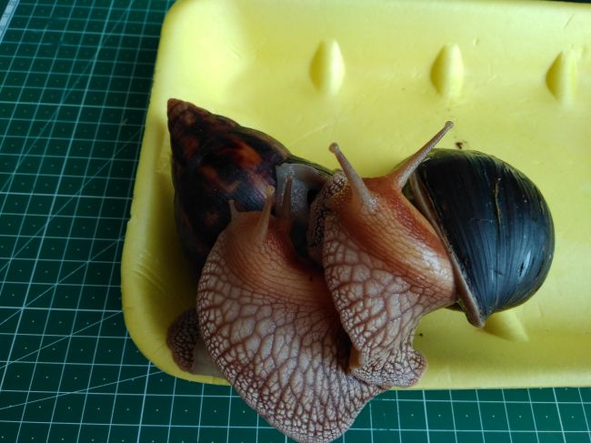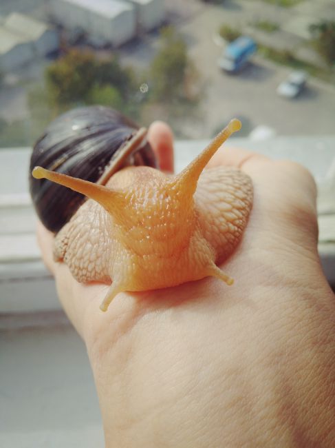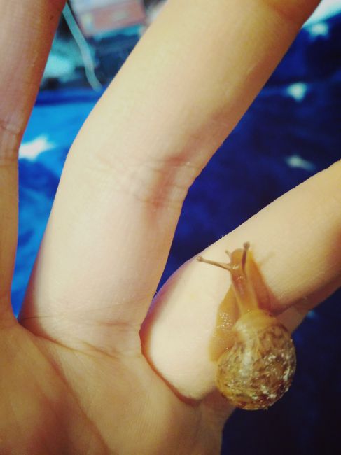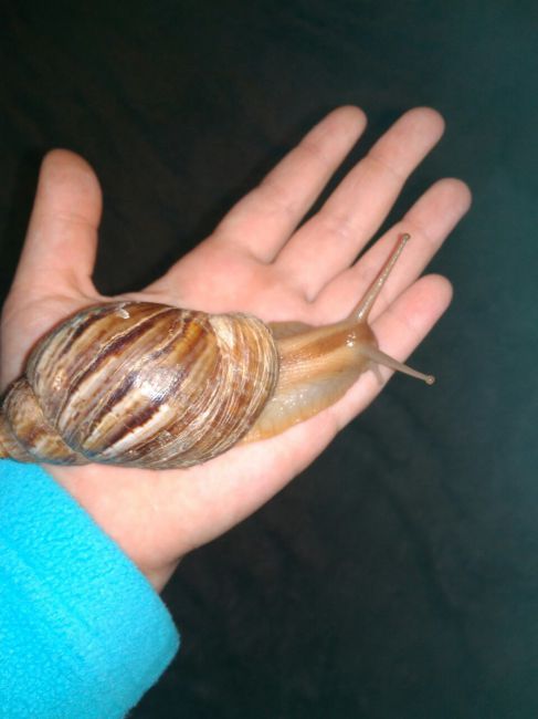 Нам отдали улитку. Дочь увидела, сказала: или я, или она. Мне тоже не понравилась, купили ей аквариум, все дела, но так и не привыкли к этому существу. Мерзкая, огромная, в аквариуме должно быть влажно, и запашок соответствующий, противный, ночью идешь, а это чудо на всю крышку аквариума повисло, я гирьку сверху на всяк случай положила, ай ну ее, отдали желающим с огромной радостью, в месте с аквариумом, сама на такси везла, чтоб не передумали.
