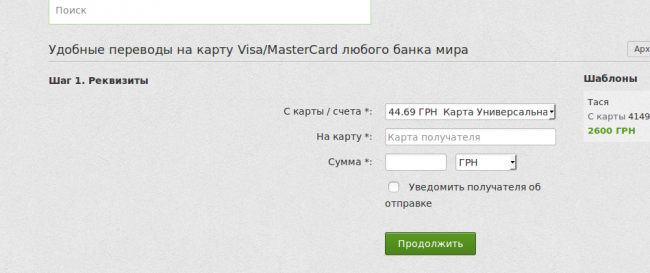 Месяц назад переводила в последний раз! с валюты на валюту. Перед этим - в гривее много раз. Не могу сейчас проверить, пустая карта, мин перевод 10 дол. но как видите, даже шаблон у меня сделан. Вот через эту позицию перевожу