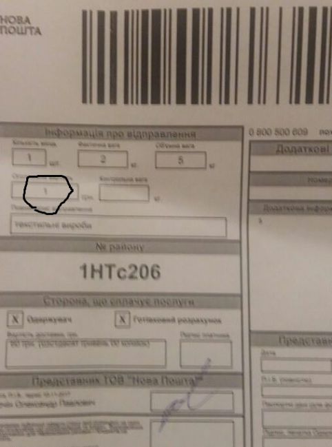 Оплатила товар,мне сразу отправили, 11 ноября должна посылка прийти на мое отделение,но не пришла, спросила на отделении,сказали посылка в городе на терминале,ждите смс прийдет. Вот сегодня 14 ноября не пришла посылка,я позвонила на горячую линию новой, они ничего не сказали, сказали Вашим вопросом занимаются,ожидайте звонка. Я позвонила менедежеру сообщила что куртки нет, и новая почта нарушает сроки доставки,попросила ее скинуть фото декларации, мне скинули фото....когда я увидела оценочную стоимость 1 грн.,то меня подкосило....Говорю, а мочему оценочная не 3300, а 1 грн?????