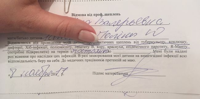 Фото отказа от прививки