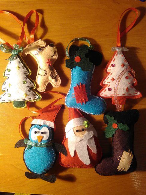 3. человечек который держит деревянную плоскую елочку(ее разрисовать нужно краской зеленой). человечек-из набитого ватой мешочка тельце и вокруг-тряпочка красивая -на клей пистолет ,ручки из проволчек и голвоа- пенопластовый шарик обтянутый чулокм(следочком) а на ней-нарисовать улыбку и глазки,волосы приклеить - из ниток для вязки толстых.