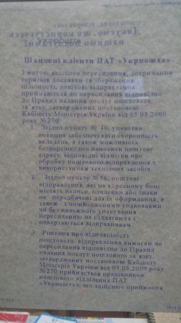 не переводите нервы-бесполезно! я писала и на фейсбук, и в книгу жалоб и на центр. дирекцию, и на гор линию звонила-бесполезно. ничего не добилась. получила только ответ от дирекции, что они приносят свои извинения и выдержку, где указано, что за упаковку несет ответственность отправитель и он ее выбирает, но тут же дописка, что все же принимает и решает оператор. в общем , сами себе перечат. а из отделения даже не перезвонили. просто перешла на другое отделение. а во время скандала те операторы в лицо мне смеялись, что я ничего не добьюсь. оказались правы.