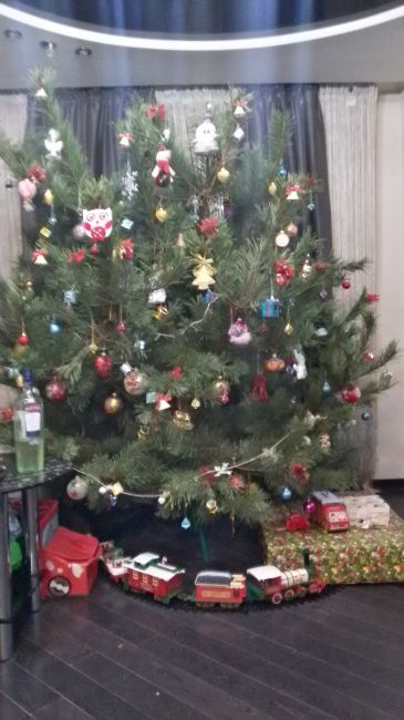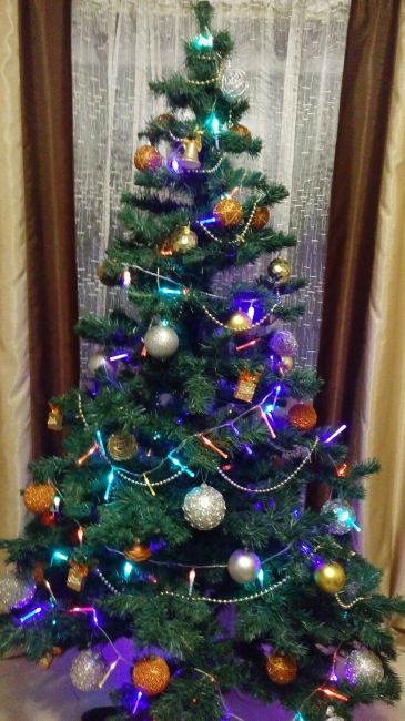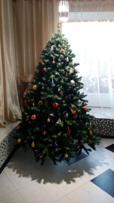 Моя))) украшала сама - дети взрослые,а ёлку люблю ставить)) гирлянду вначале забыла раскрутить и украсить..Состоит пока без огоньков))).....дождики не люблю.