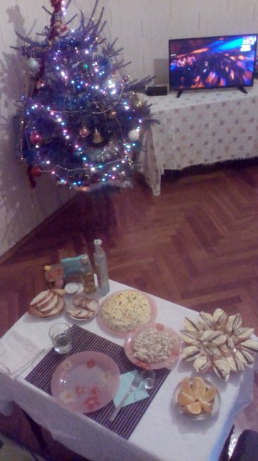 салатик нарубала, 3 бутылки шампанского, пить только некому, я сама столько не смогу)