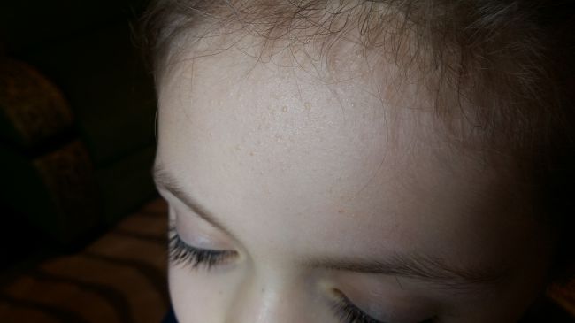 Сыпь видна только под опреденные углом/не чешиться/на ощупь хорошо ощущается шероховатая или гладко-пупырчатая мелкая без содержимого внутри. Косметикой пользуемся сейчас только ля рош. Сама сыпь местами, но с сентября начала расти. Сначала она была на животе район пупка и чуть выше и не много на лопатка. Потом бош стало поясница ниже живота..ю сейчас фрагментами на руках и подбородок и под подбородком на лбу ...даже на ладошке есть чуть чуть. ..