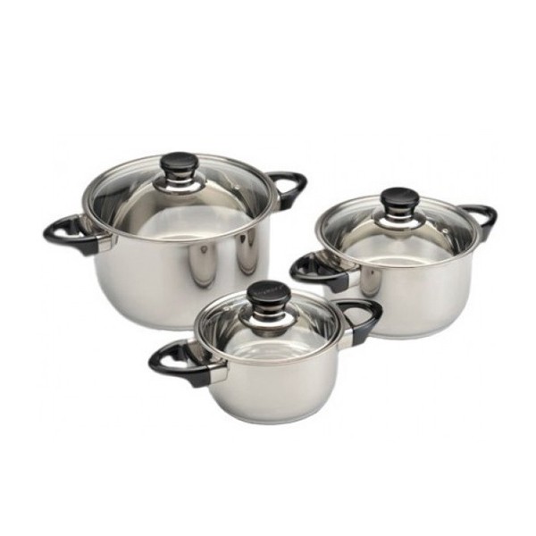 Из недорогих понравились только тефаль. Ручки приклепаны насквозь и добротно, как на кастрюле, так и на крышке. Поверхность глянцевая, без каких либо шероховатостей, ширина каждой кастрюли позволяет поставить ее нп любую конфорку, и стенки не будут гореть.