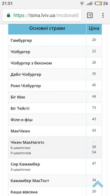 Биг Тейсти и Биг Мак? Раньше были цены на сайте, а сейчас нет