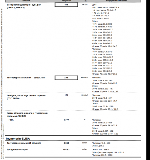 Хочу перед визитом к врачу услышать как у кого было. (уточню,тестостерон общ,дгаэс,дегидротестостерон-выше нормы!!!)