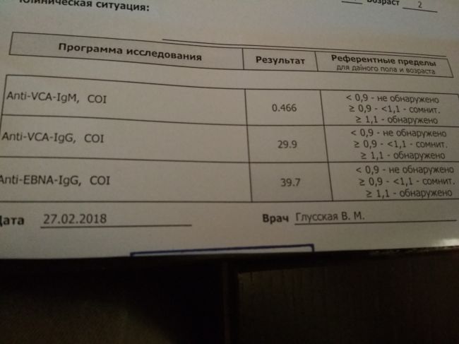 Недавно дочка, 2.7, переболела иммунной тромбоцитопенией. Среди прочих анализов гематолог назначила сдать серологические пробы на Эпштейна - Барр. Сегодня забрала ответы. На приём завтра. Ещё как понимаю надо записаться к инфекционку? Критически ли большие эти цифры?