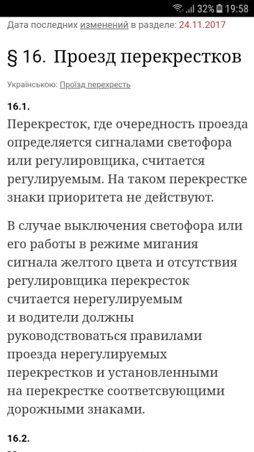 У разі вимкнення світлофора або його роботи в режимі миготіння сигналу жовтого кольору та відсутності регулювальника перехрестя вважається нерегульованим і водії повинні керуватись правилами проїзду нерегульованих перехресть та установленими на перехресті знаками пріоритету відповідними дорожніми знаками (нові зміни від 15.11.2017).