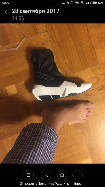 Должен бы прийти 8 женский размер, пришёл 43 мужской. Муж ´обрадовал´ фотоотчётом))))