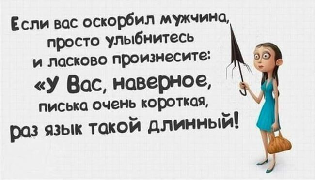 Старое, про прилипчивых нытиков-женихов: - ’Проще дать, чем объяснить’))