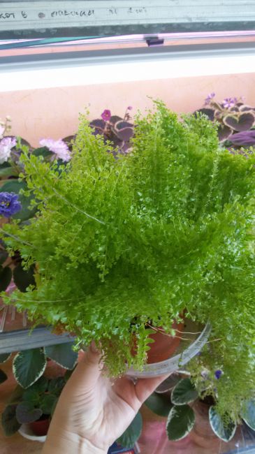 соглашусь со всем кроме освещения. папоротники теневынослывые. да, если на окне, то листья не сильно вытягиваются. у меня два вида растет можна сказать что в тени и сними все нормально. они под потолком на отапливаемой лоджии (фото прикрепила ниже. были посажены ростки по пару листов. сейчас пошли активно в рост). подсветки как для других растений у них нет. но ка писала ’на паравозе’ опрыскивать надо очень часто.