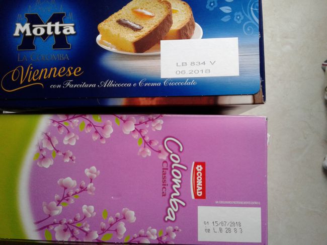 Панетонне чисто різдвяний пиріг, через місяць практично по магазинах їх нема,Коломбо це суто пасхальний пиріг.І Панетонне і Коломбо є з різними начинками-ізюм,цукати,мигдаль,шоколад,лісончелло....Ціна залежить від вмісту хімічних продуктів,чим більше хімії тим дешевше,чим натуральніший тим дороща.Відповідно і терміни якщо дешева то термін може бути місяць і більше,дорога наприклад на 2-3тижні.Запамятайте одне в пасхальні свята ні в одному магазині нема Панатоне!Зараз продають тільки Коломбо,ціна наприклад в лідлі 2,5є,ціна орієнтовно від 2 до 35є,так як сьогодні в Італії Пасха,з цього тижня будуть вже знижки -50% на них