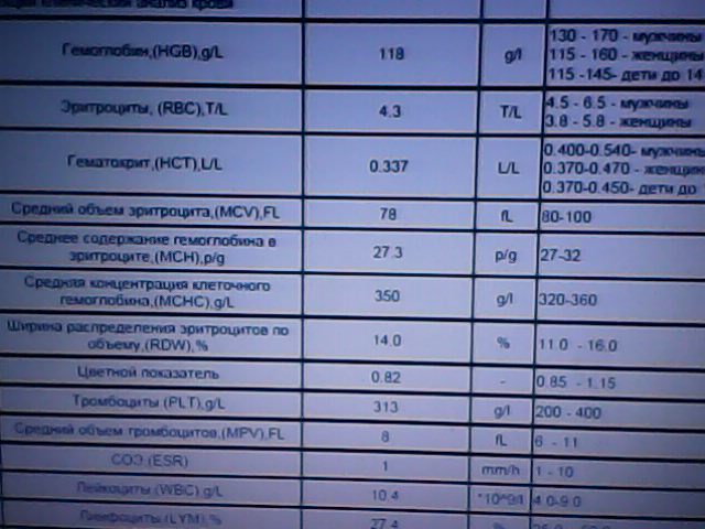 гемоглобин - пересмотрите питание и откорректируйте в сторону железосодержащих продуктов.