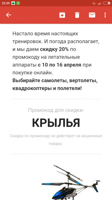 Настало время настоящих тренировок. И погода располагает, и мы даем скидку 20% по промокоду на летательные аппараты с 10 по 16 апреля при покупке онлайн.