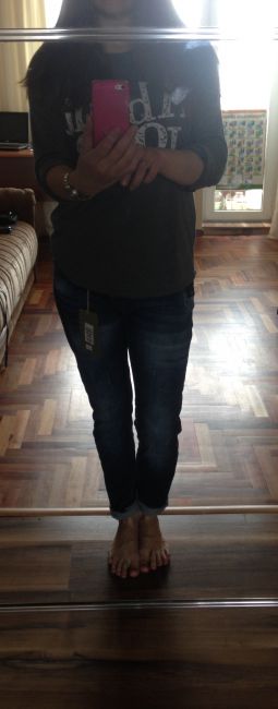 Не в обиду.....по поводу ваших бойфрендов...онаи на фото вам реально ноги укорачивают или у вас сами ноги от природы такие.....не люблю короткие ноги у женщин,тем болееесли их подчеркивают еще такими брюками.Я бы на вашем месте не оставляла бы джинсы.Да еще за 1200 грн.вы себя ими уродуете.