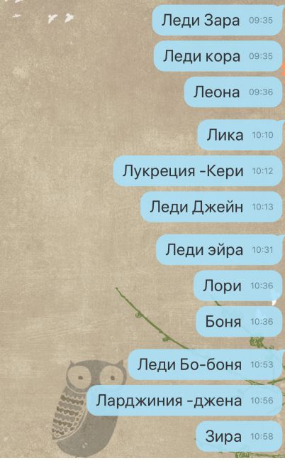 Линда, Лаки, Луиза, Лейла, Линдси, Лори, Люси, Лакси, Любава, Лолита, Лоя, Летиция, Лисичка, Люся, Леона, Лайма, Лилу, Леди, Луна