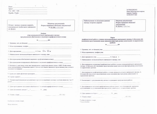так мы тоже в Киеве.Но осмотр(это указано в новом законе о поступлении в школу),сейчас по желанию.Просто время поджимает,поэтому и возмущаюсь по поводу прохождения врачей.Форма-то 086,она ведь и есть разрешением на поступление.