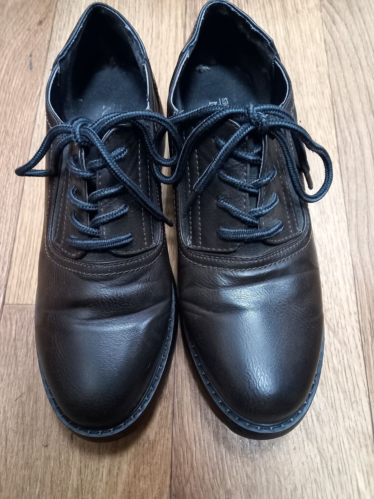 Отдам женские ботинки, кожзам, коричневые, на шнурках. Стелька 24,7, 39 разм.