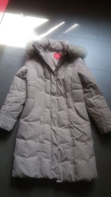 Есть еще такая ветровочка, размер указан 38 европейский, идет на С. После стирки, но лежала без дела, за это время на сгибе ворота проявилась желтая полоса, думаю, что отстирается. Цвет немного выцвел. Плюс надо перешить пуговицы.