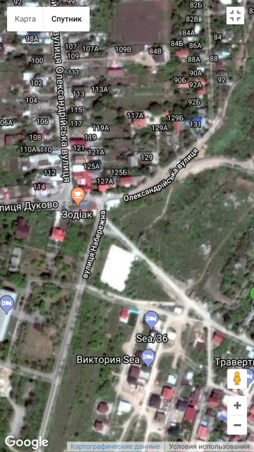 Видите, на ф.1 сверху слева ул.Александрийская и кафе Зодиак? Приблизительно оттуда нужно идти в нижний правый угол по направлению к Травертин. Теперь ф.2 - идем по дороге, где слева надписи ’Травертин’, ’Морской’, а справа ’Сокол’.