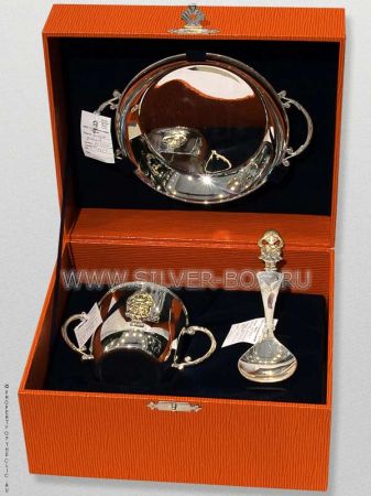 Предлагаю набор серебренной детской посуды. Или серебренную ложку или золотую, есть серебренные погремушки. Выбирайте