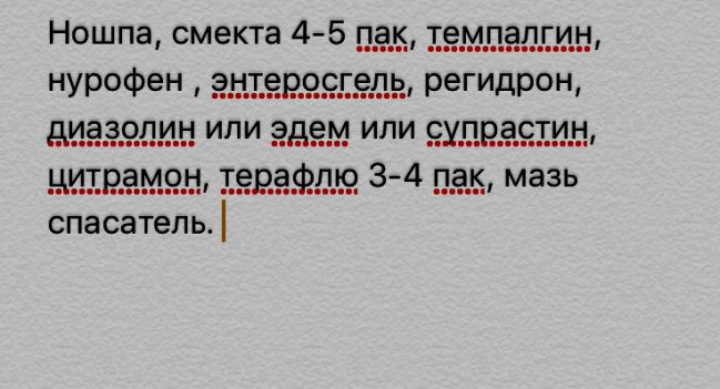 Обычено, все препараты первой помощи есть в домашней аптечке. Собираю их и покупаю немного того, чего не хватает.