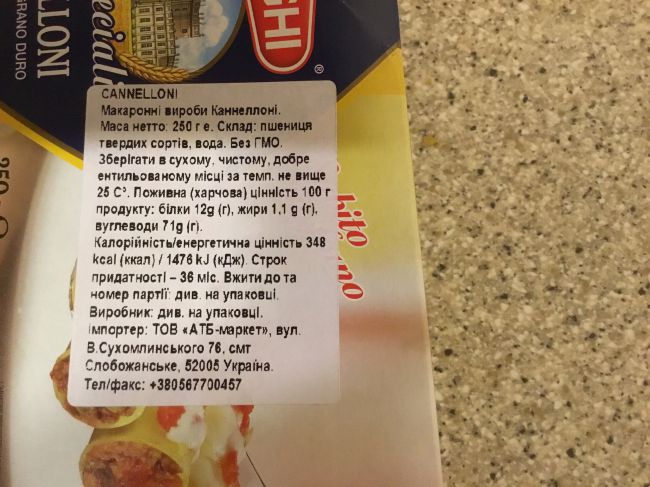 При цене в других маркетах 70-120 грн за 200-300 грамм, в АТБ итальянские каннеллони стоят 28 грн