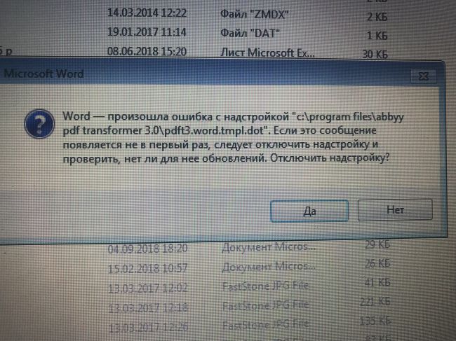 Я не очень разбираюсь) но у вас сбой надстройки ABBYY PDF Transformer