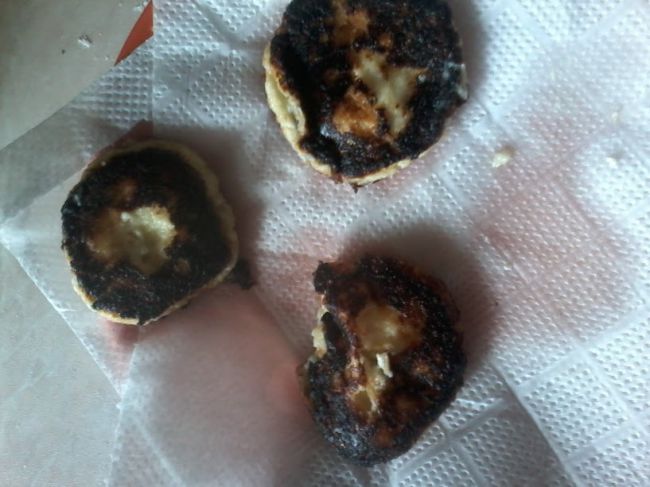 раньше делала по другому рецепту - без банана и с сахаром, малой ел только если в духовке - обычные сырники потом на пергамент и в духовку