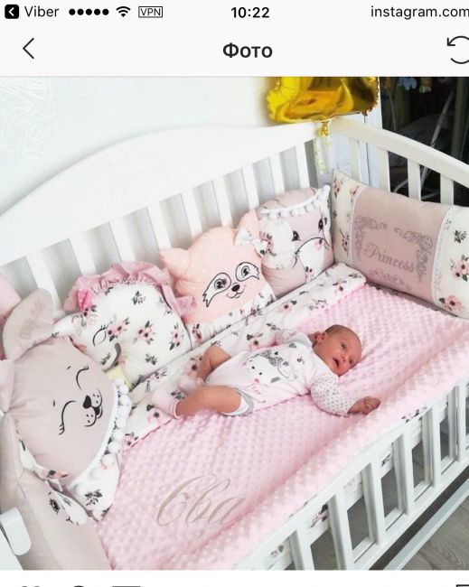 Слишком много всего. Буквально 3-4 мес и малышка начнёт ползать по кроватке и сбрасывать на себя эти подушки-пылесборники