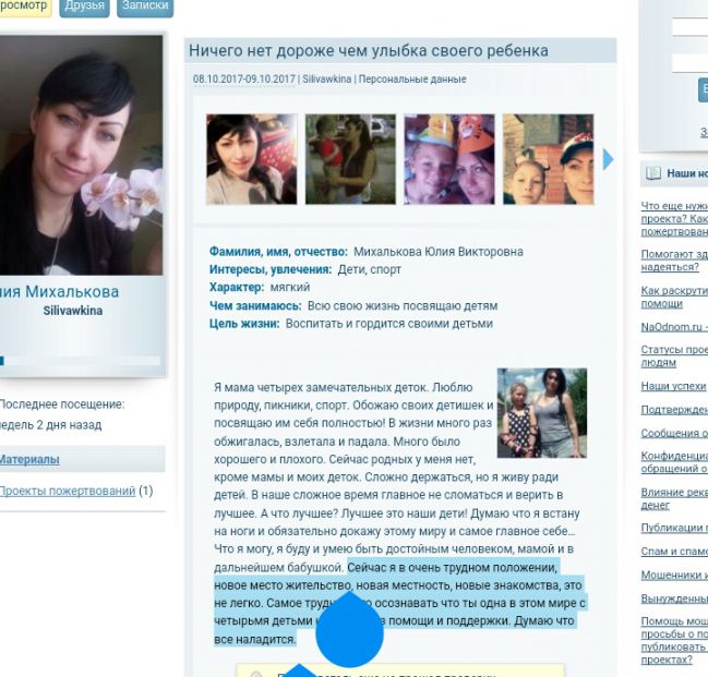 Девочки, но ведь может быть правдой: и несколько детей, и плохое здоровье (ну, может чуть преувеличено), и помощь другим нуждающимся. Разве хорошая жизнь у человека, если ему приходится так отчаянно просить помощи?