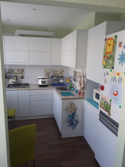 Из недочетов: жалею о выборе светлой (бежевой) напольной плитки в кухню. Любая крошка и капля бесит))))