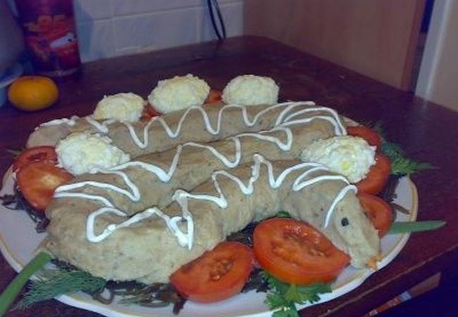 поживніша ніж звичайна, лиш на великі релігійні свята таке подають. соус, ну то 《змійка》, хай буде, лиш майонез то є соус, а не салат