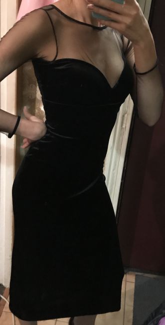 Глубокий вырез, чёрный вельвет.