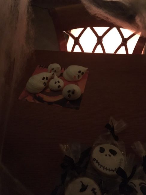 да, типа того. у меня был торт с желейными червями, салат оформленный, как выпавшие глаза, пицца с привидениями. делали такие пальцы из отварных сосисок. груши и мандарины разрисовывали маркером, как приведения и тыквы.