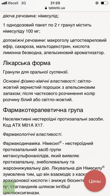 Пили немисил при высокой температуре пол пакетика, пили его при лимфоузлах увеличенных.