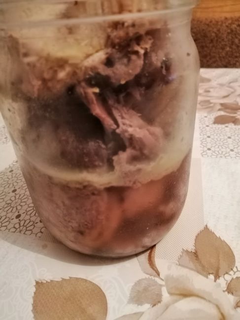 - Мясо разложить в стерильные баночки, разлить бульон и сразу накрыть крышками ( твист или полиэтиленовая ). Оставить до охлаждения. И в холодильник.