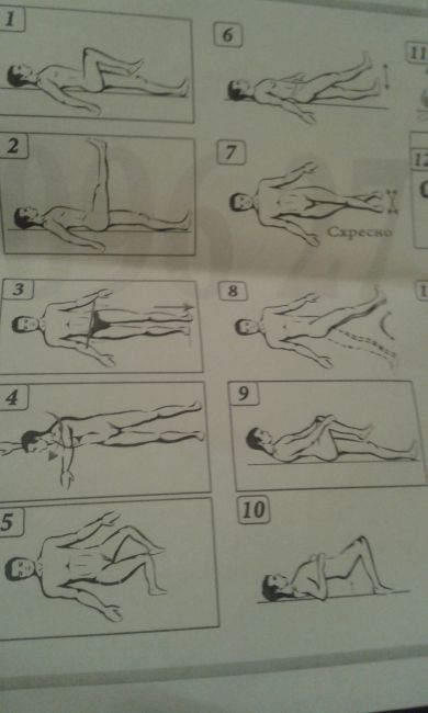 Эти упражнения мне дал мануальниый терапевт. Делать по 10 раз в два подхода. Если честно, то я иногда делаю больше подходов, результат лучше.