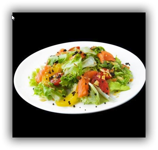 Креветки, апельсин, грейпфрут, микс салатов с цитрусовым соусом и миндалем, помидоры черри