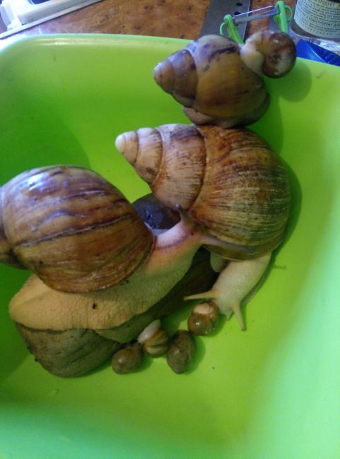 Оу, вымахали больше ладони... Какая-то разновидность ахатин...