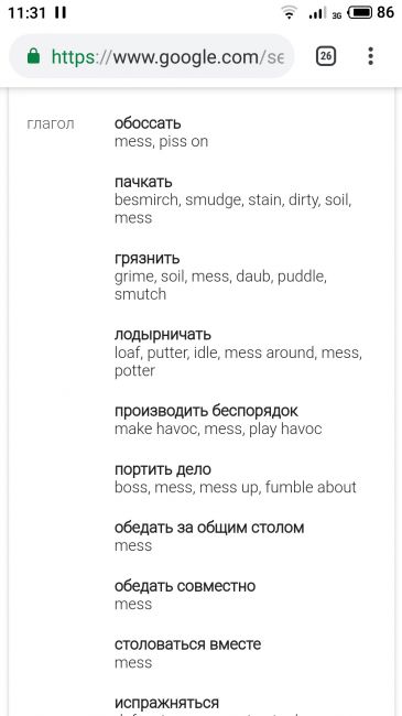 Перевод в гугл-переводчике слова "mess". Я считаю, что нужно "обписать". Скрин перевода ниже