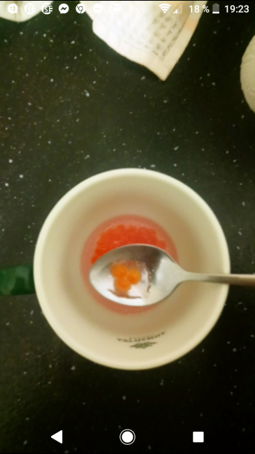 Бросьте несколько икринок в кипяток. Искусственная икра в кипятке растворяется.