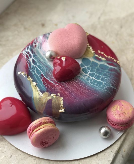 Часто еще кроме мусса в торт идут прослойки компоте, кранчи, орехи карамелизированные или пралине.